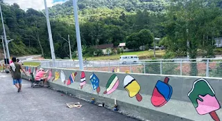Colaboradores da Secretaria Municipal de Cultura e Relações Institucionais de Blumenau (SMC) aproveitaram o tempo agradável e ensolarado desta quarta-feira, dia 31 de março, para dar andamento ao projeto chamado Rota da Arte Urbana e Verde, criado em parceria com as secretarias de Manutenção e de Meio Ambiente e Sustentabilidade. A intervenção artística está sendo feita na ponte em construção que leva o nome de Wilson Seiler, mais conhecida como Ponte do Mirelo, um vendedor de picolés muito querido na comunidade do Garcia que faleceu em 2017, aos 60 anos, vítima de acidente de trânsito.
